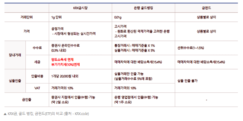 - KRX 금 거래소에서 거래